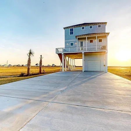 **Welcome to Sunset Bay Villa Galveston**, a serene retreat where coastal charm meets modern luxury. Nestled along the pristine shores of Galveston, this elegant property offers breathtaking views of the Gulf of Mexico and invites guests to indulge in a tranquil escape. Just 90 km from William P. Hobby Airport, guests can easily access this tropical paradise, making it the perfect destination for quick getaways or extended vacations.